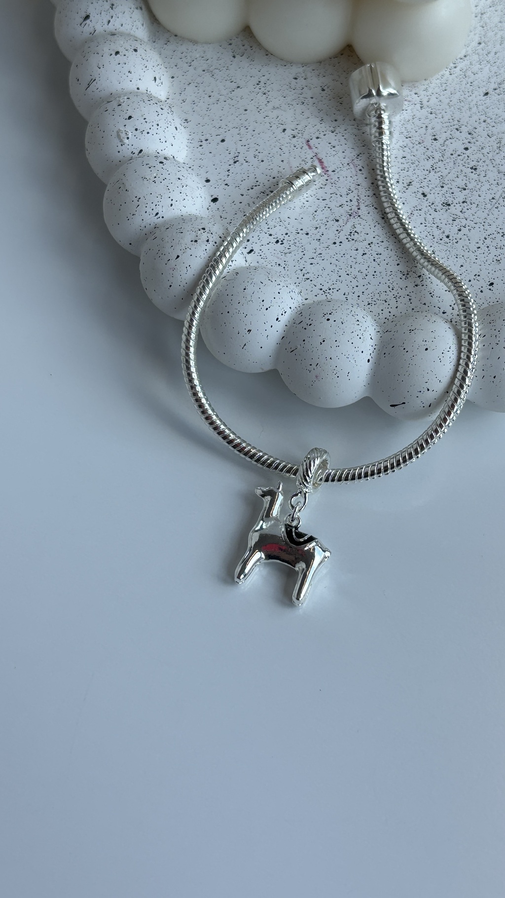 O Berloque Lhama é a escolha perfeita para quem ama animais e simboliza a resistência, a força e a tranquilidade. Com um design delicado e cheio de detalhes encantadores, essa peça traz a representação de uma lhama com um pano resinado em preto sobre suas costas, adicionando um toque de sofisticação e estilo.